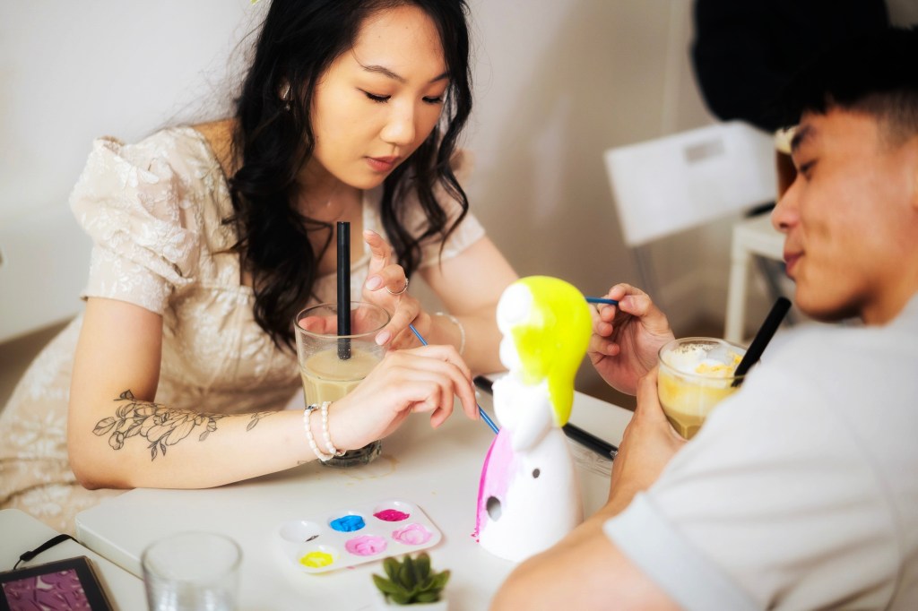 Une idée audacieuse nous a bouleversé après un voyage au Vietnam. Fascinés par l’omniprésence des bubble tea coffee shops qui intègrent des ateliers de peinture à chaque coin de rue, nous avons remarqué que ces boutiques étaient souvent fréquentées par une classe sociale modeste, qui retrouvait facilement le sourire à travers cette activité. Nous avons alors décidé d’importer ce concept en France. Nous pouvons vous dire que l’aventure est aussi colorée que les boissons que nous servons. Nous sommes impatients de vous accueillir et de vous faire découvrir ce petit coin qui redonne le sourire !