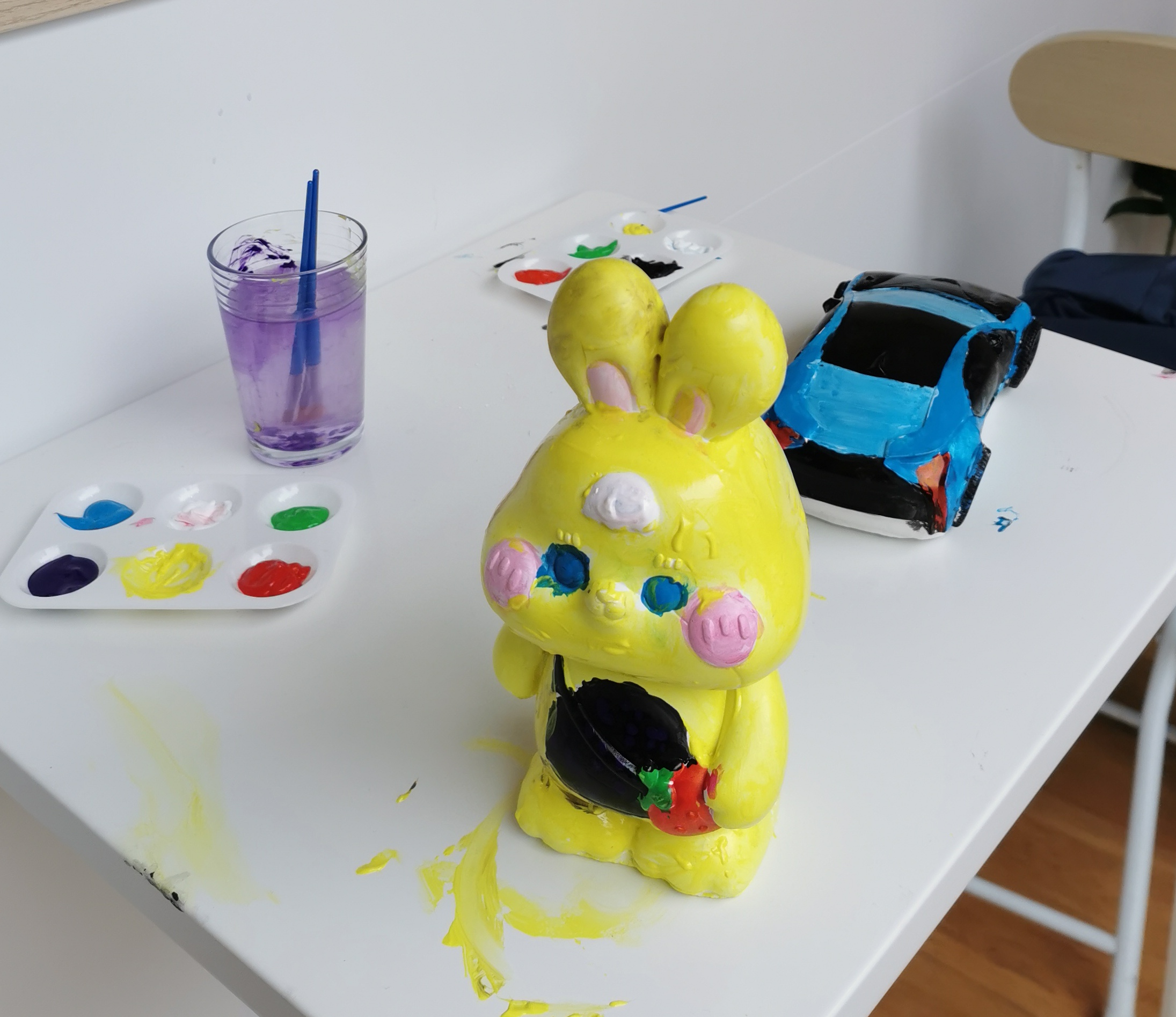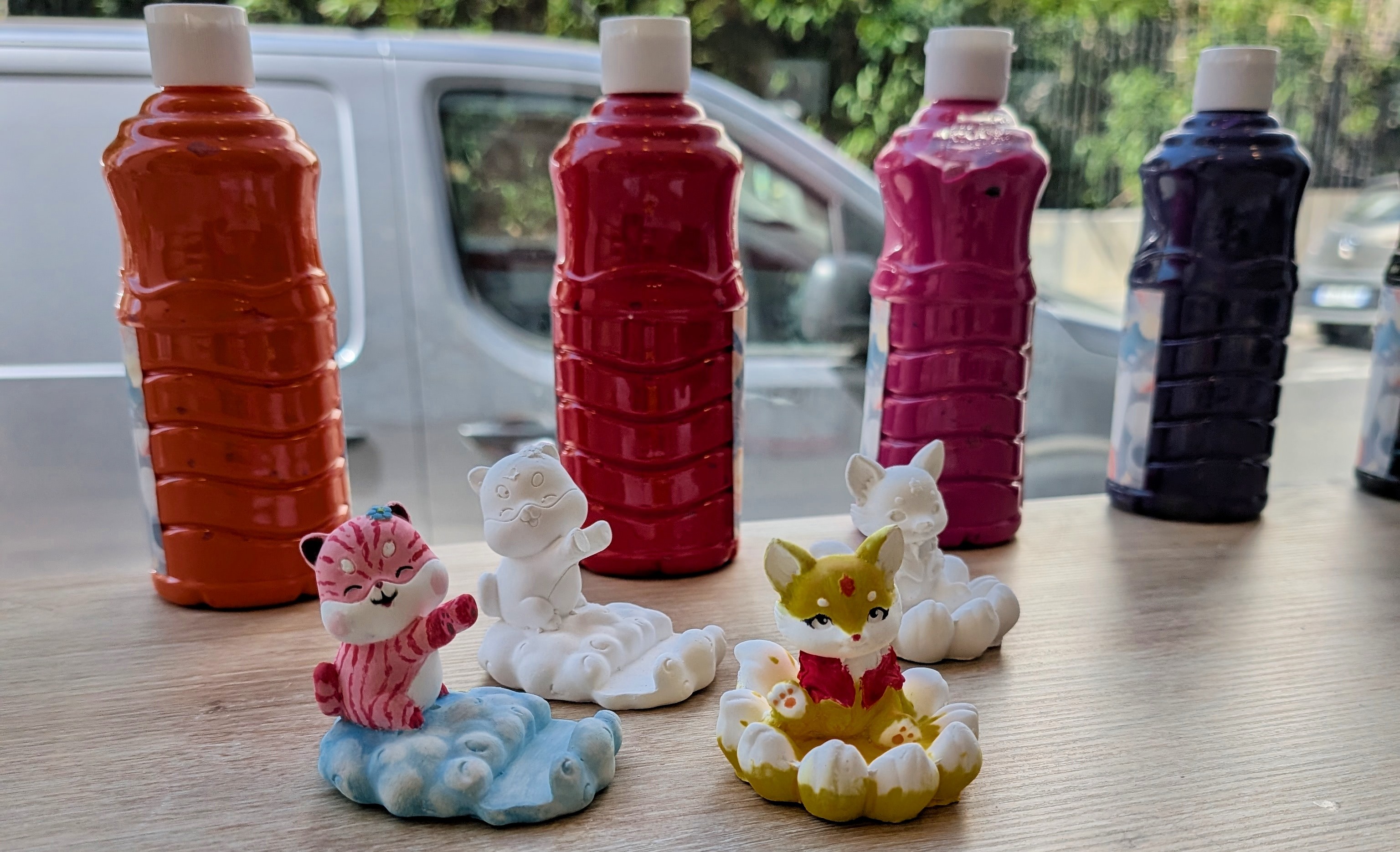 Nous fournissons la peinture et tous les outils nécessaires pour vos activités artistiques, seul le support est à acheter. En fonction de la taille des sculptures, vous pouvez également trouver des boîtes, des pots ou des tirelires.